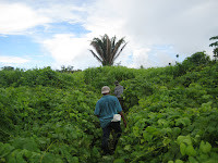 I went to bed only to awake to a cool rainy morning hoping that Belizeans don’t go to the farm in the rain. I ate breakfast and sure enough, right on Belize time of 45 minutes after they said they would leave, I suited up and started on my way. The weather was nice and we started walking through the village and out the back down a dirt path. Within minutes my pants and shoes were caked with mud. Ok, this isn’t that bad, at least the sun isn’t out. I sure am glad that I put bug spray on because I can see the mosquitoes swarming around the man in front of me.
